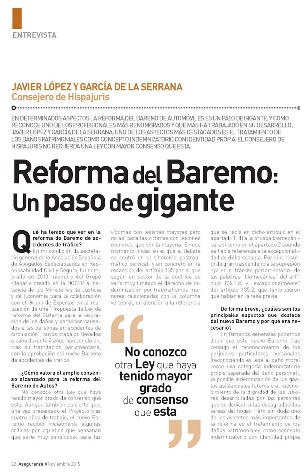 «Reforma del Baremo: Un paso de Gigante». Entrevista al director de HispaColex, Javier López y García de la Serrana (Aseguranza)