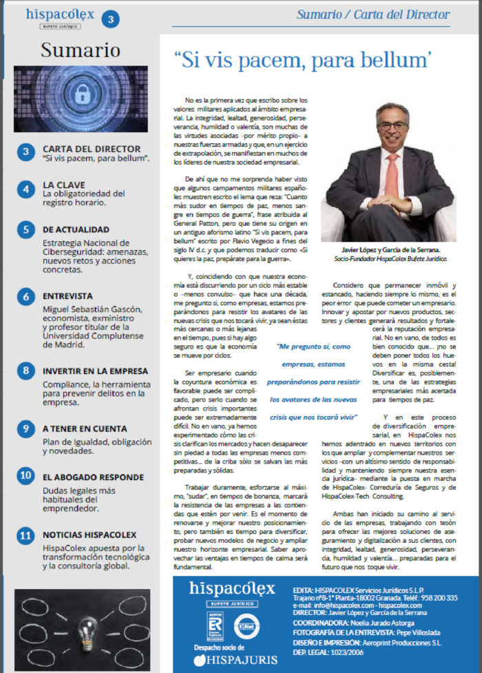 Carta del Director «Si vis pacem, para bellum», Javier López y García de la Serrana, publicada en la Revista nº 60 de la Gaceta Jurídica de la Empresa Andaluza.