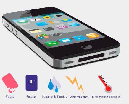 Daños por agua.- Algo menos frecuente pero también presente, cubre los posibles daños que el agua puede causar en el dispositivo.