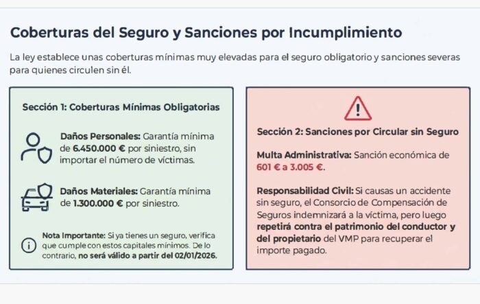 Por ello, el periodo transitorio fijado por la disposición transitoria de la Ley 5/2025 para estos vehículos, finaliza el 26 de enero de 2026. A partir de esa fecha, estos deben tener seguro obligatorio, sin necesidad de inscripción previa en el registro de vehículos.
