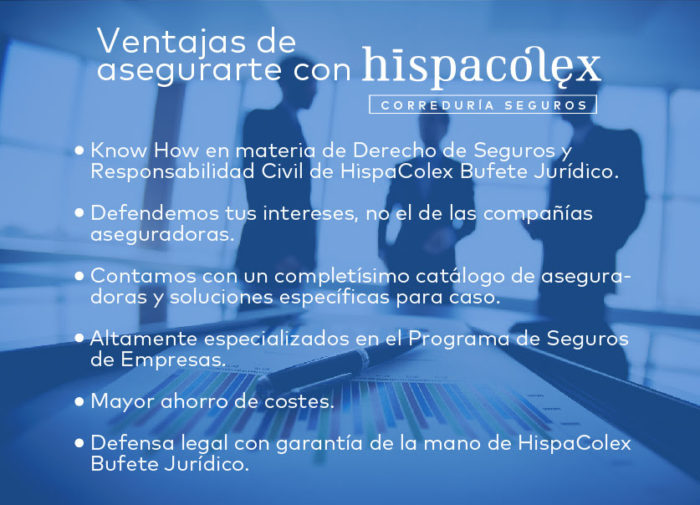 Con el objetivo de ofrecerte un asesoramiento global, hemos constituido HispaColex Correduría de Seguros S.L., una nueva línea de servicio en la que tendrás a tu disposición a nuestro equipo de profesionales altamente cualificados que te asesorarán en materia de seguros.