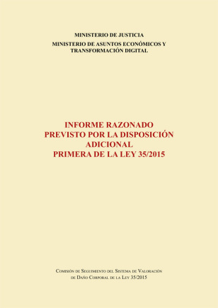 En coedición con el Ministerio de Justicia, el Ministerio de Asuntos Económicos y Transformación Digital presenta el Informe previsto en la disposición adicional primera de la Ley 35/2015, de 22 de septiembre, de reforma del sistema para la valoración de los daños y perjuicios causados a las personas en accidentes de circulación. El informe tiene por objeto analizar la puesta en marcha del sistema legal valorativo, en vigor desde 2016, sus repercusiones jurídicas y económicas y el sistema de actualización de sus cuantías, así como realizar sugerencias para su mejora.